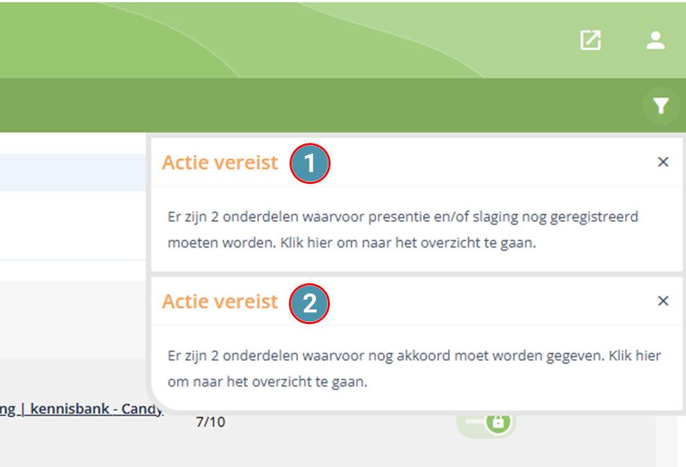 Is er door jou actie vereist? Dan wordt dat direct na het inloggen rechts in het scherm getoond met behulp van meldingen. Deze meldingen kunnen bestaan uit: