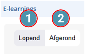Een lijst met te volgen of gevolgde e-learnings wordt geopend, deze is verdeeld in twee tabjes.- Lessen die je nog moet gaan volgen of aan het volgen bent.